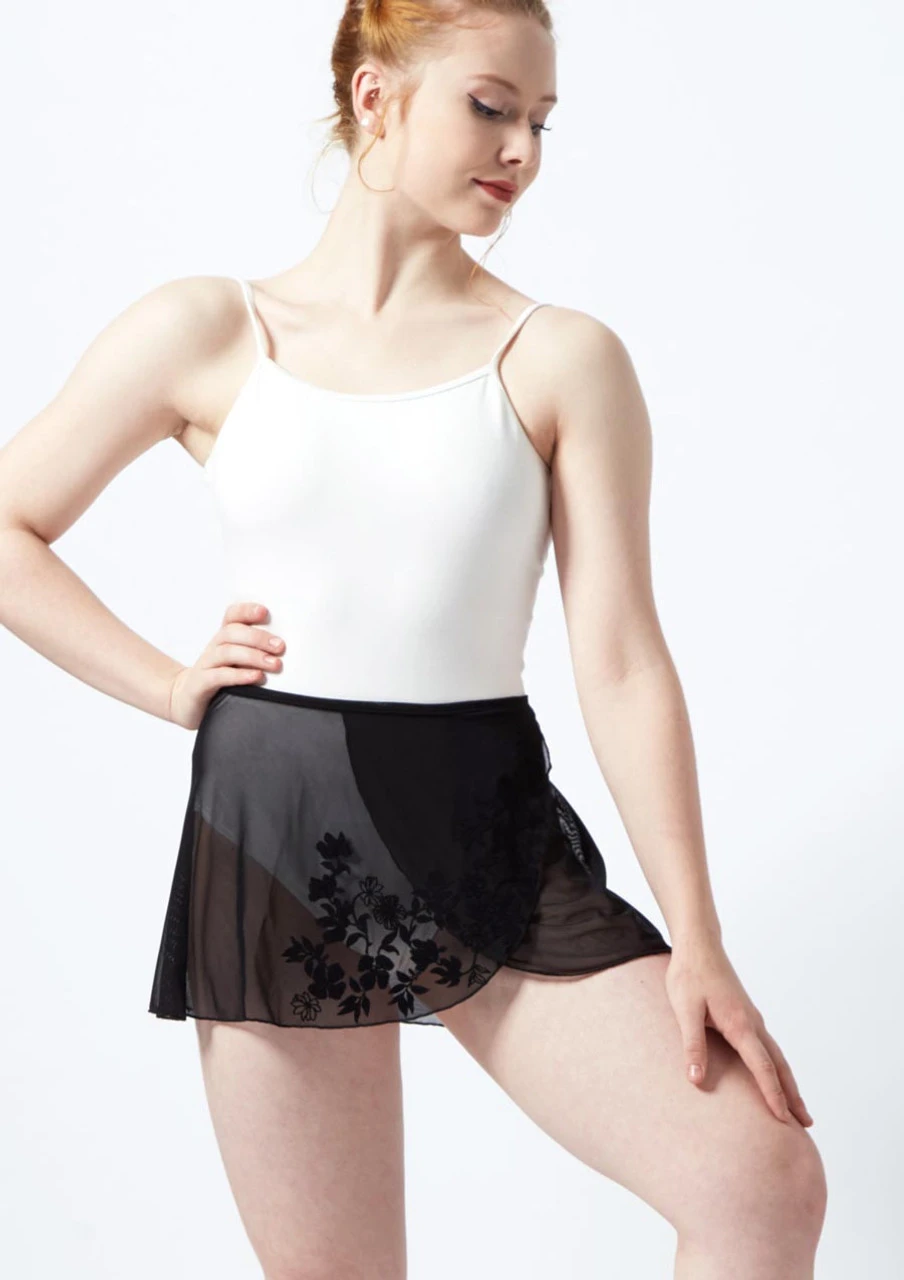 This skirt by Ballet Rosa oozes sophistication and grace. Add this lightweight skirt to your favourite leotard with ease thanks to the tie wrap style. Delicate velour flowers give the skirt pretty feminine detail which is subtle yet stylish. For a complete look pair this skirt with Ballet Rosa’s Adele Flock Mesh Leotard.