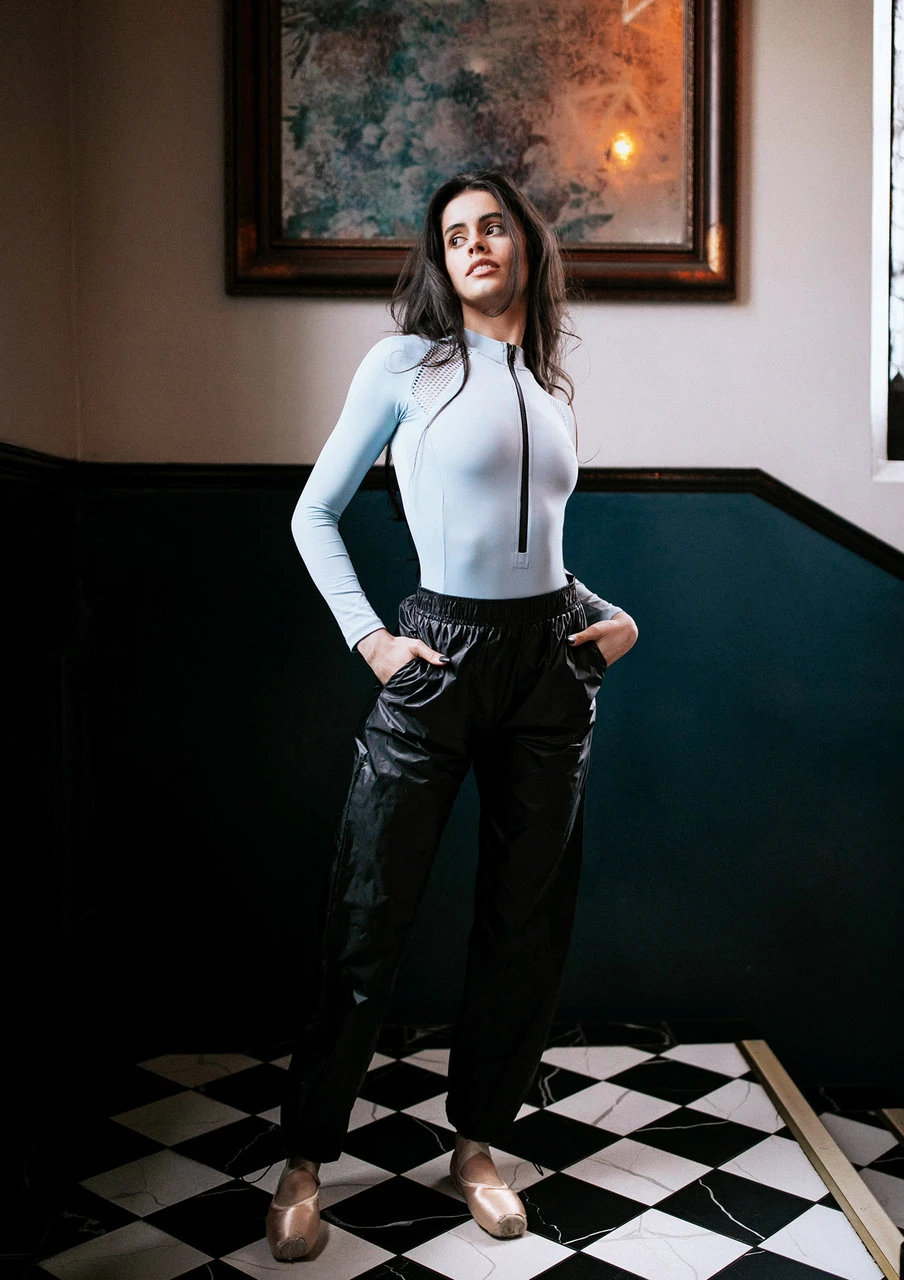 Warm up but look cool in the Hattie trousers. Perfect to add over your leotard during warm-up and whilst walking between classes. Made from 100% lightweight nylon so you can move easily whilst keeping your muscles super warm before dancing. Our favourite feature is the elasticated cuff with a toggle that allows you to shorten & tighten the trousers to any required length. The toggle also makes it easy for you to add and remove the trousers over your pointe shoes if necessary. We’d style with the Move Dance Regina Heat Retention Jacket for a full coordinated look.