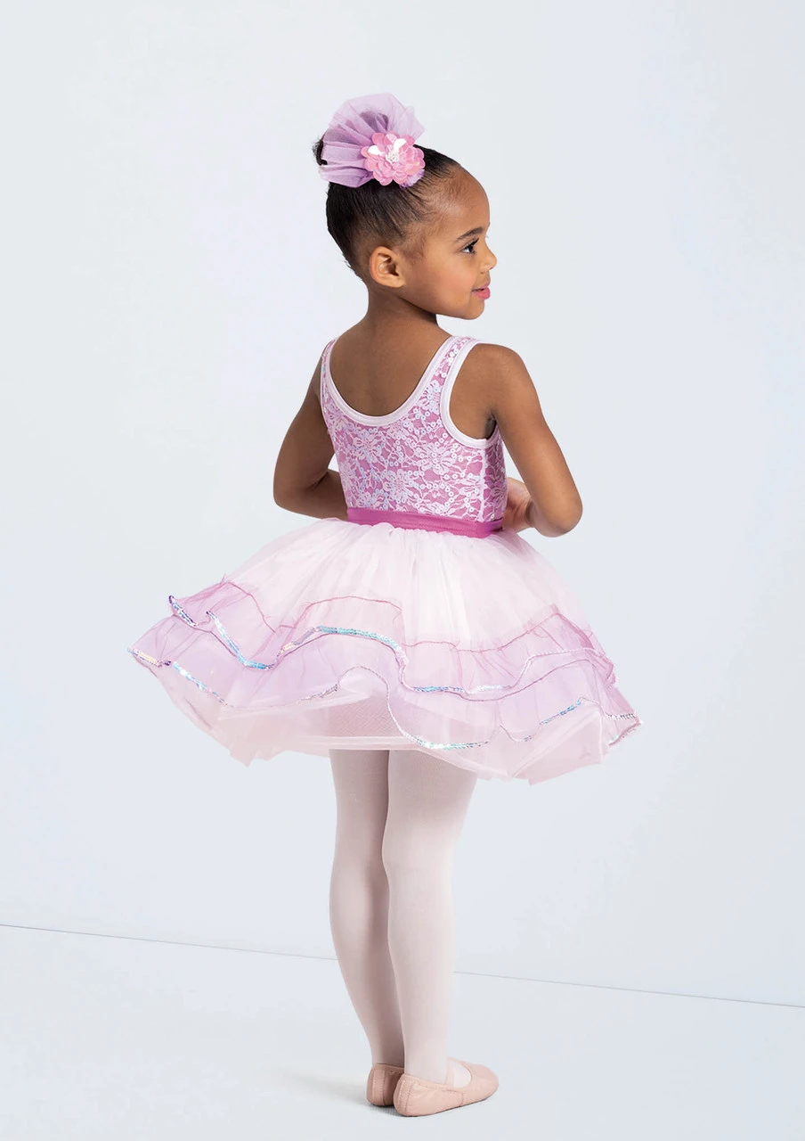 -Top skirt with ruffled tulle hem trimmed in iridescent sequin